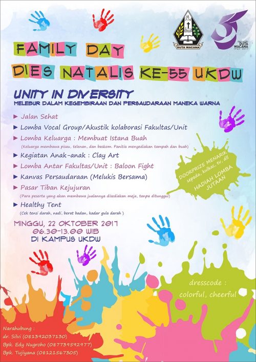 Memeriahkan Dies Natalis ke-55 UKDW, panitia mengadakan bebagai acara, salah satunya acara Family Day yang diadakan pada :