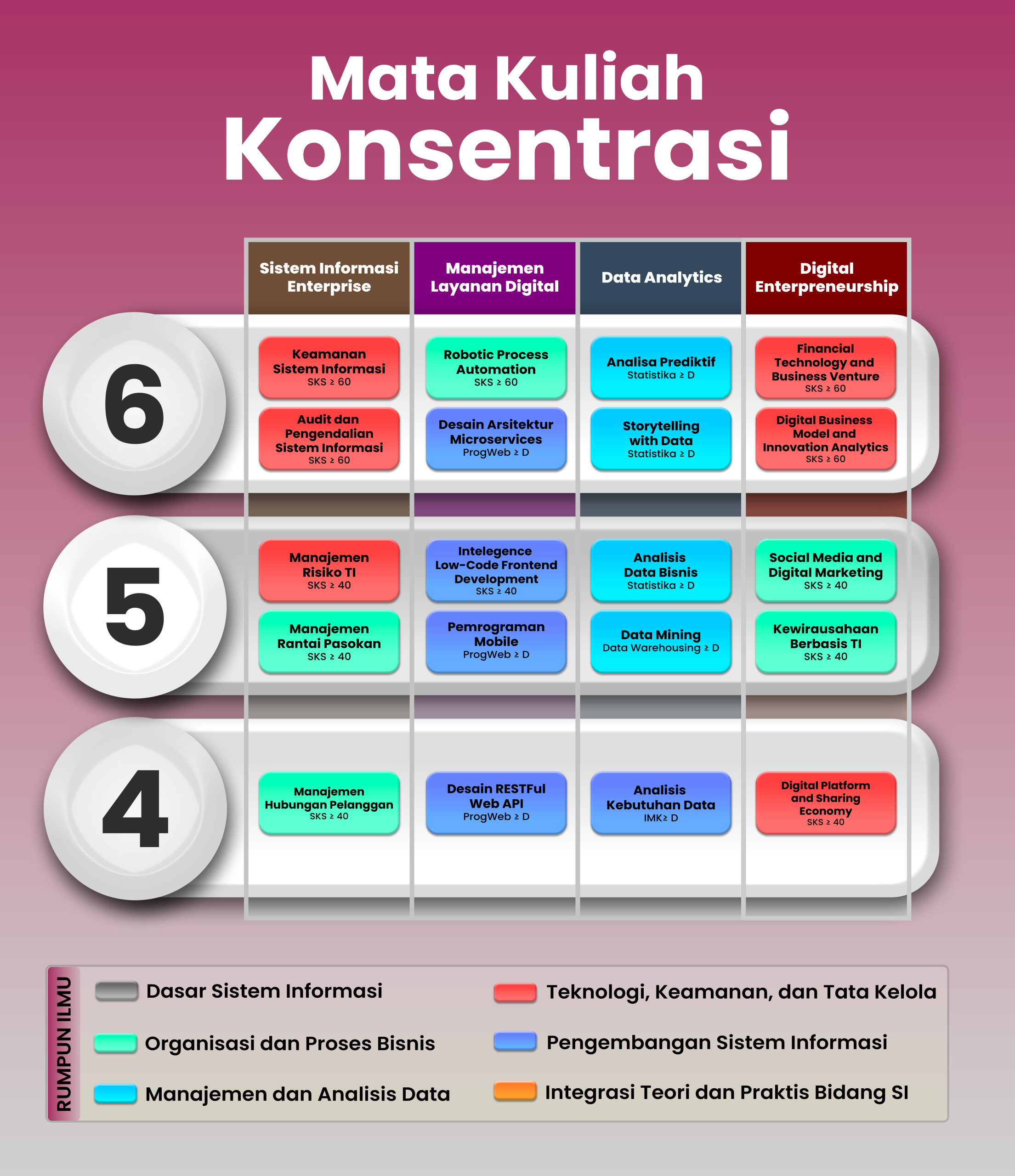 Program studi Sistem Informasi di UKDW secara komprehensif dirancang untuk mencetak lulusan yang tidak hanya menguasai aspek teknis sistem informasi, data, keamanan, dan pengembangan sistem, namun juga memahami aplikasi dalam konteks organisasi, bisnis dan masyarakat yang plural dan global. Kurikulum yang berbasis luaran, pilihan konsentrasi yang relevan dengan industri digital, nilai-inti yang menekankan inisiasi, inovasi, integrasi, informasi, dan inspirasi, serta prospek karir yang luas menunjukkan bahwa program ini memiliki orientasi yang kuat ke arah kesiapan kerja dan kontribusi masyarakat. Jika kamu tertarik bidang sistem informasi yang menggabungkan teknologi, bisnis, data dan inovasi — maka program ini tampak sebagai pilihan yang baik.