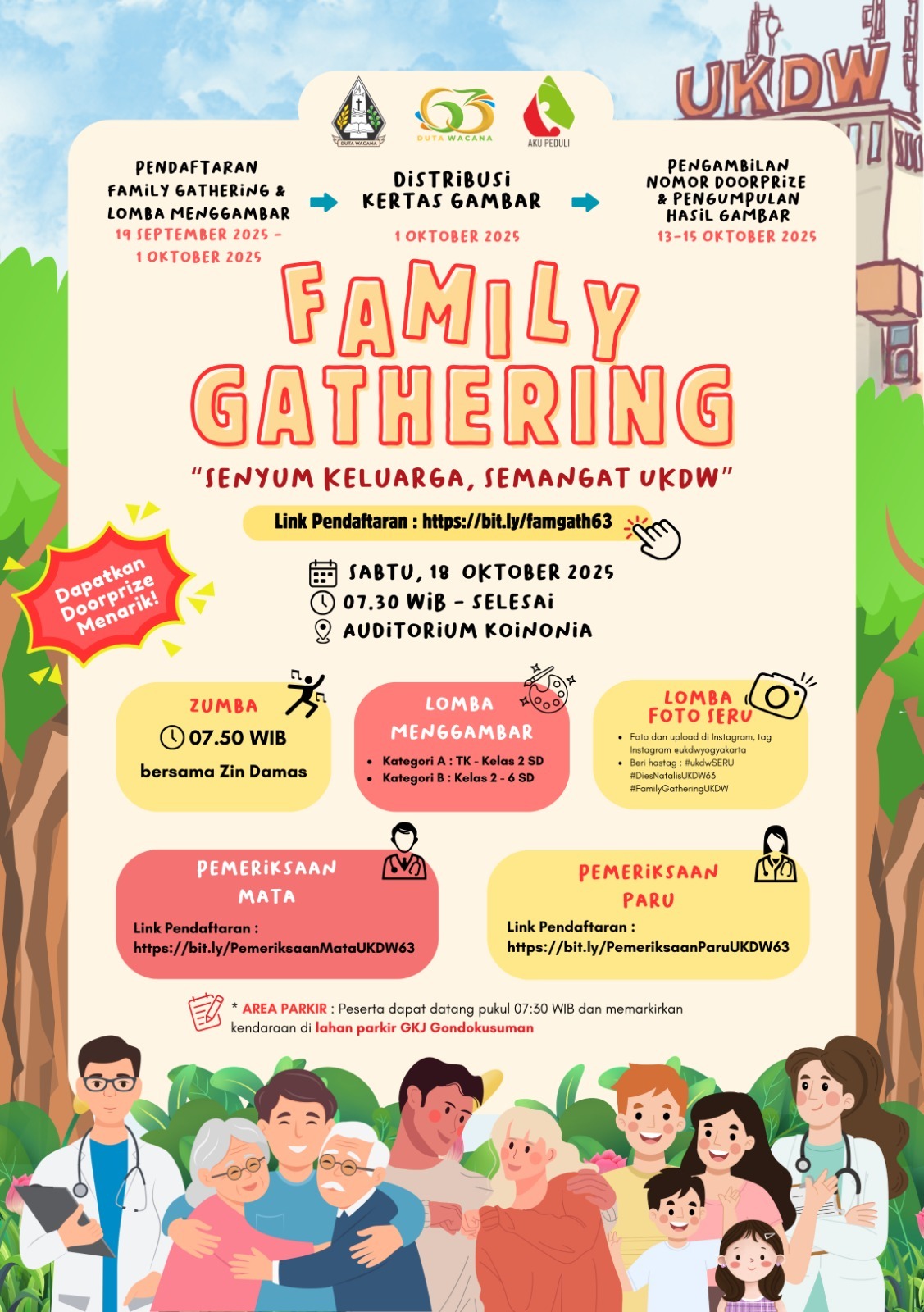 Dalam rangka memeriahkan Dies Natalis ke-63 Duta Wacana, kami mengundang seluruh Warga UKDW dan keluarga untuk bergabung dalam Family Gathering yang penuh kebersamaan dan keceriaan. Acara Family Gathering akan diadakan pada: Hari, tanggal:ย Sabtu, 18 Oktober 2024 Waktu: 07.30 WIB โ …