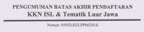 Mempertimbangkan dinamika dan kesepakatan antara Lembaga Penelitian dan Pengabdian pada Masyarakat dengan prodi-prodi di lingkungan Universitas Kristen Duta Wacana terkait penyelenggaraan KKN pada semester genap tahun akademik 2017/2018 maka dengan ini diumumkan beberapa hal penting sebagai berikut: