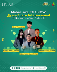 Mahasiswa Program Studi Informatika Universitas Kristen Duta Wacana (UKDW) kembali mencatat prestasi internasional dengan meraih tiga gelar juara pertama dan satu posisi finalis dalam ajang hackathon berbasis Web3 dan kecerdasan buatan (AI). Capaian ini menunjukkan kemampuan mahasiswa UKDW dalam mengembangkan solusi teknologi yang inovatif dan relevan secara global.