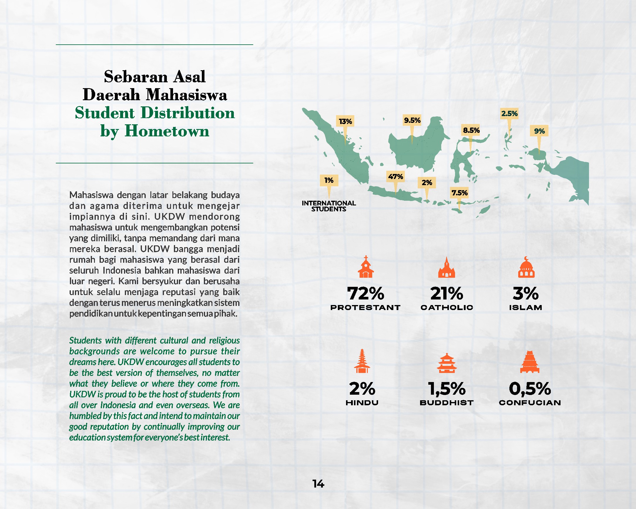 Berbekal berbagai pencapaian serta potensi, para mahasiswa dapat berbaur dengan baik di kampus. Perbedaan kebudayaan, latar belakang sosial dan kepercayaan menjadi kekuatan yang sinergis seperti peribahasa “Rumahku adalah Surgaku”.