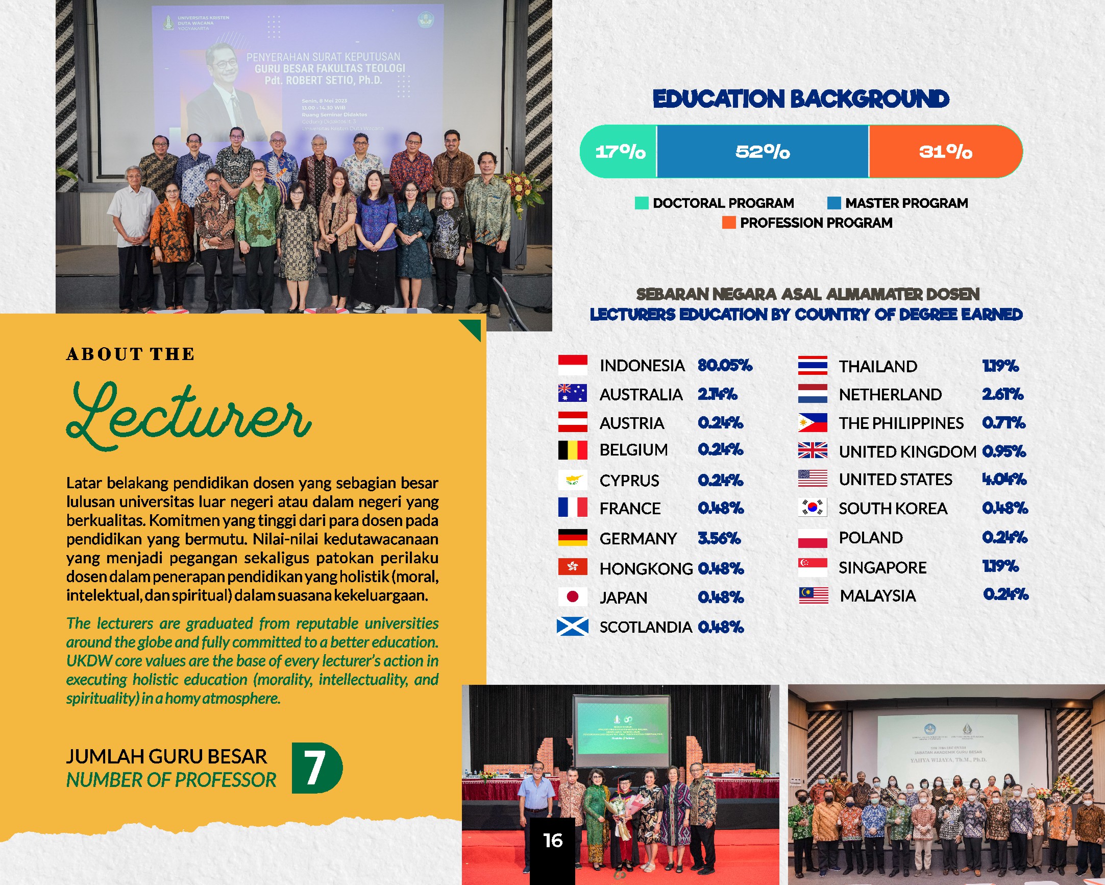 Keramahtamahan nasional tercermin dari keragaman kebudayaan. Para mahasiswa yang datang dari berbagai negara, kebudayaan, etnik, dan agama memperkuat citra UKDW sebagai universitas dengan komunitas pluralistik yang multikultur dan global. Kurang lebih 100 mahasiswa datang dari berbagai negara ke UKDW dengan tujuan yang berbeda-beda, baik untuk studi maupun penelitian.