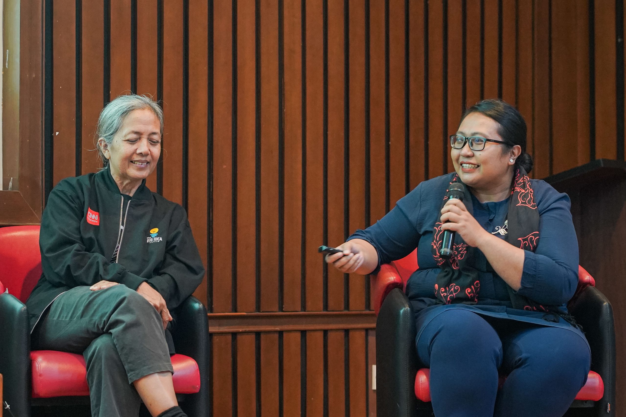 Talkshow bertajuk “Kanvas Jadi Ruang Dialog: Menggerakkan Rasa untuk Bumi dan Sesama” menghadirkan dua narasumber perempuan inspiratif yaitu Arahmaiani, seniman Indonesia yang dikenal melalui karya-karyanya yang kritis terhadap isu kemanusiaan dan lingkungan, serta Winta T. Satwikasanti, M.Sc., Ph.D., dosen Desain Produk UKDW.