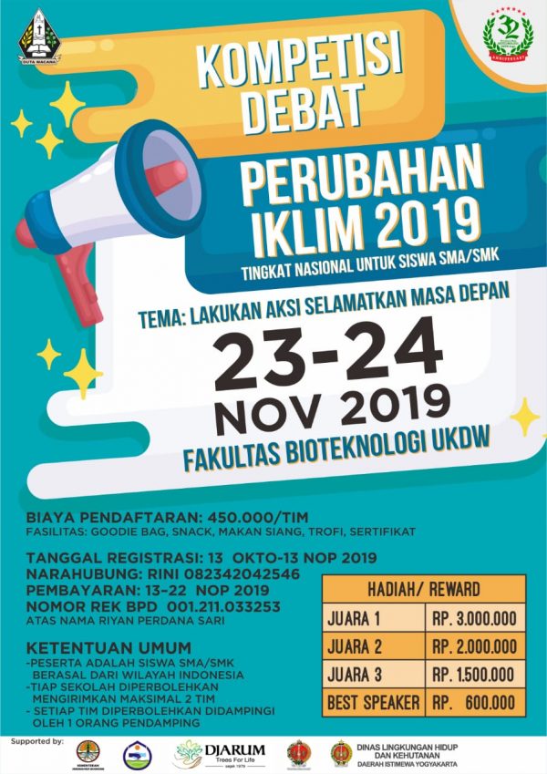 [et_pb_section fb_built=”1″ _builder_version=”3.19.17″][et_pb_row _builder_version=”3.19.17″][et_pb_column type=”4_4″ _builder_version=”3.19.17″][et_pb_image src=”https://www.ukdw.ac.id/wp-content/uploads/2019/12/WhatsApp-Image-2019-12-13-at-13.24.22.jpeg” show_in_lightbox=”on” _builder_version=”3.19.17″][/et_pb_image][/et_pb_column][/et_pb_row][et_pb_row _builder_version=”3.19.17″][et_pb_column type=”4_4″ _builder_version=”3.19.17″][et_pb_text _builder_version=”3.19.17″] Fakultas Bioteknologi Universitas Kristen Duta Wacana (UKDW) Yogyakarta didukung oleh Kementerian Lingkungan Hidup dan Kehutanan RI akan menyelenggarakan kompetisi Debat Perubahan Iklim 2019 pada tanggal 14-15 Desember …
