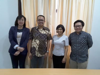 Dalam rangka membina hubungan kerjasama dengan partner di bidang Industri, Willy Sudiarto Raharjo, S.Kom, M.Cs. selaku Wakil Dekan III Fakultas Teknologi Informasi dan Antonius Rachmat C., S.Kom., M.Cs. dosen FTI mengadakan kunjungan selama dua hari di Jakarta. Pada hari pertama, kunjungan dilakukan ke PT. Asuransi Sinar Mas dan ke Bank Central Asia Tbk. Kunjungan ini bertujuan untuk mendiskusikan bentuk program internship yang akan dilakukan pada semester gasal 2018/2019.