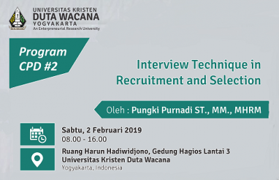Program ini akan dibawakan oleh Pungki Purnadi ST., MM., MHRM, pakar bidang Sumber Daya Manusia (SDM) dengan pengalaman sebagai profesional, konsultan dan trainer bidang SDM tingkat nasional dan internasional. Kali ini Pungki Purnadi ST., MM., MHRM akan memaparkan mengenaiteknik interview yang mencakup aspek-aspek seperti proses penerjemahan nilai perusahaan yang digunakan sebagai screening kandidat dalam proses seleksi, mendesain pertanyaan dalam interview, menganalisa jawaban kandidat dalam interview, dan latihan interview secara tepat dan akurat.