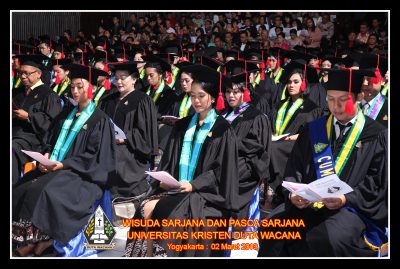Universitas Kristen Duta Wacana (UKDW) kembali menggelar acara Wisuda Sarjana dan Pascasarjana Periode Maret 2019 di Auditorium Koinonia UKDW, Sabtu (2/3). Pada periode kali ini UKDW mewisuda 150 mahasiswa yang terdiri dari 145 mahasiswa dari program Sarjana (S-1) dan 5 mahasiswa dari program Pascasarjana (S-2 & S-3).
